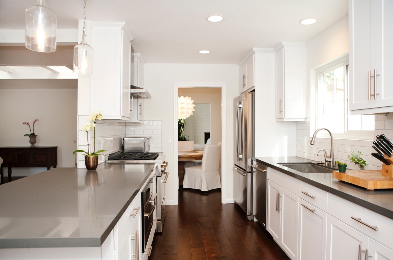 This project is a single story home located in Huntington Beach. In 8 weeks our team installed new cabinets, subway tile back-splash, all new appliances, countertops, lighting, electrical, and plumbing in the kitchen. In the dinning room, we removed a wall and fireplace to open things up. Then replaced 3 new windows, retextured and painted walls throughout the home, as well as installed all new baseboards, doors, and wood flooring.